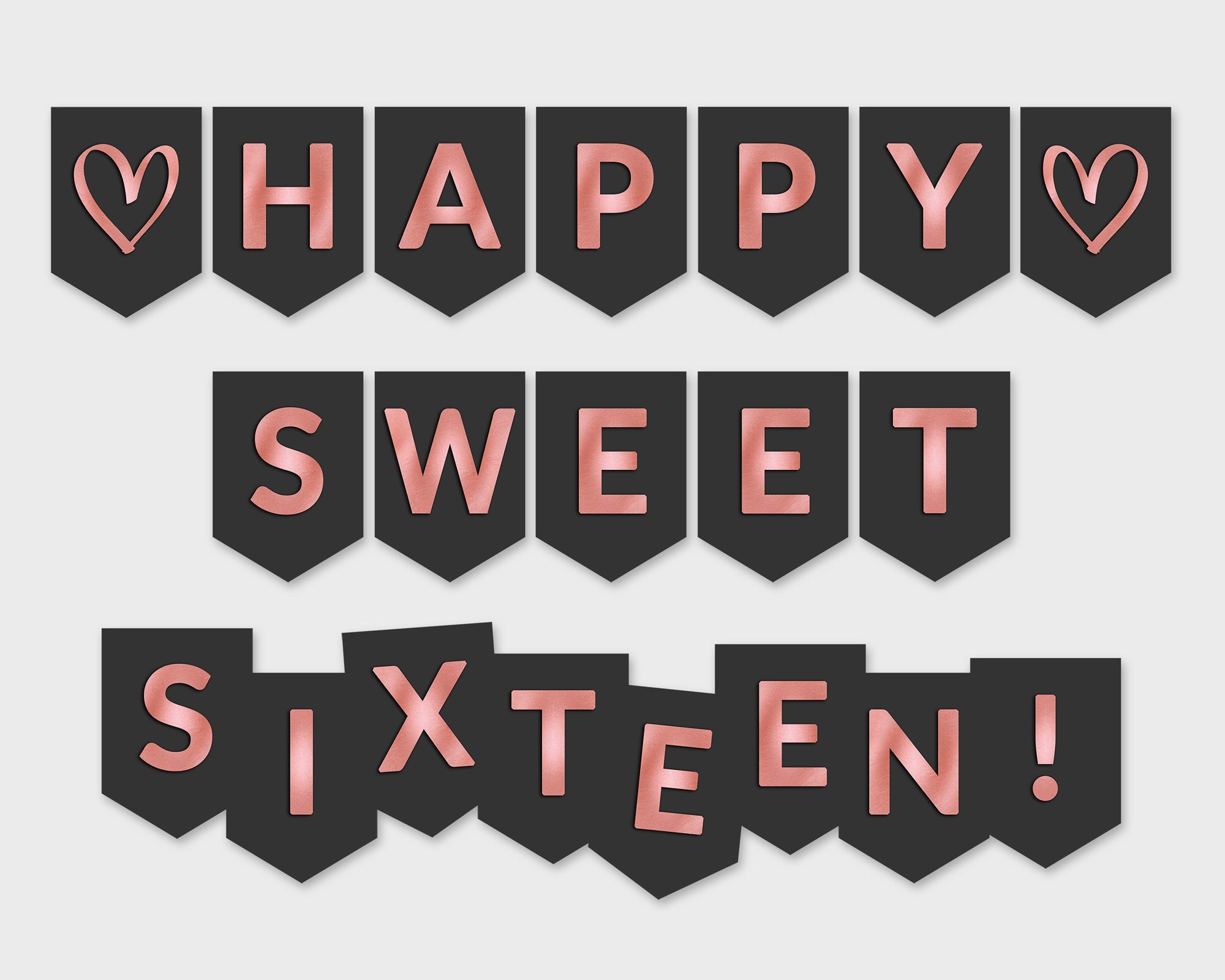 Happy Sweet Sixteen Printable Banner Black Rose Foil Flags Printable PDF DIY Print Instant Download RFC Etsy