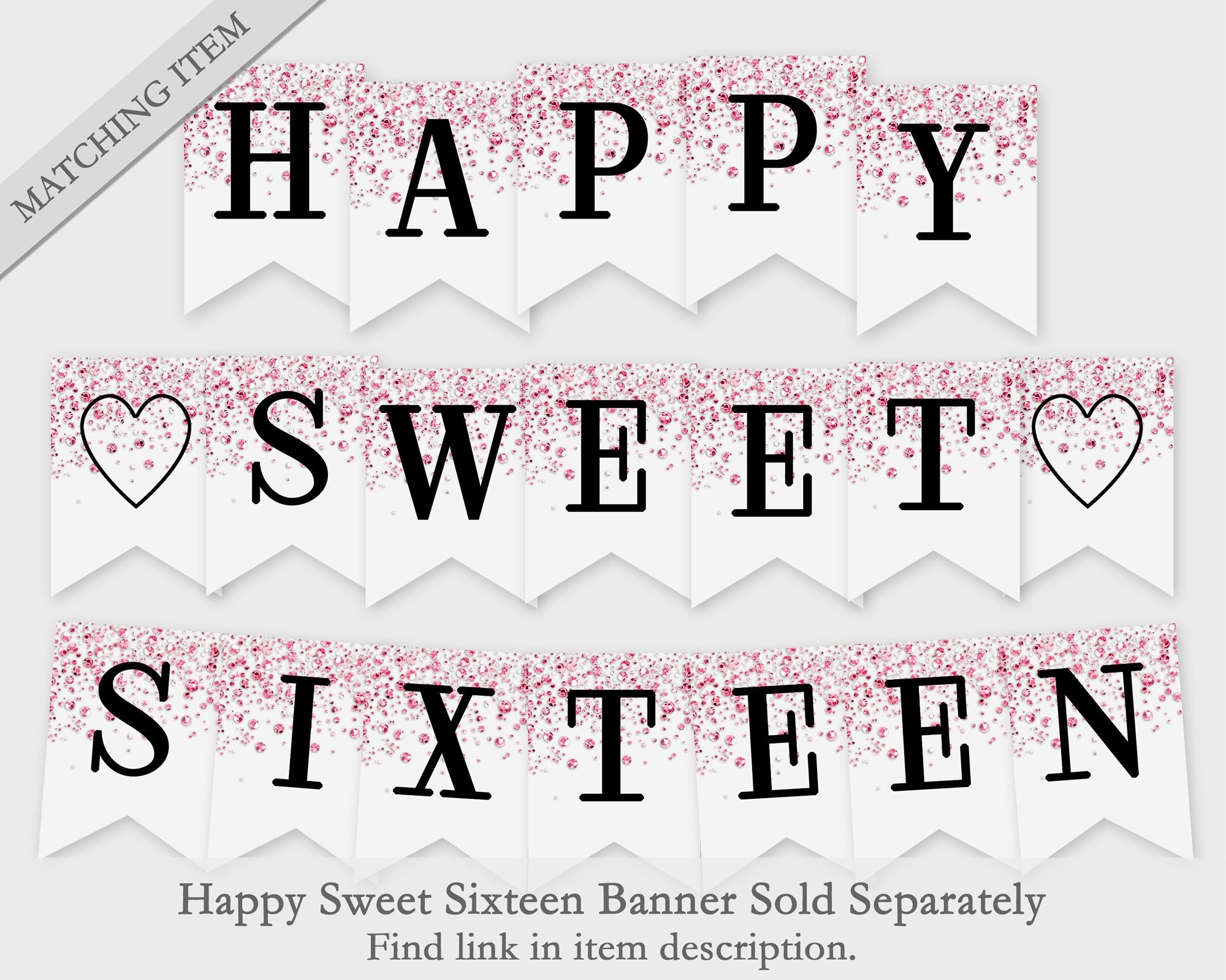 Printable Sweet 16 Birthday Banner Pink Gold Confetti Bunting Instant Digital Download Birthday Party Etsy