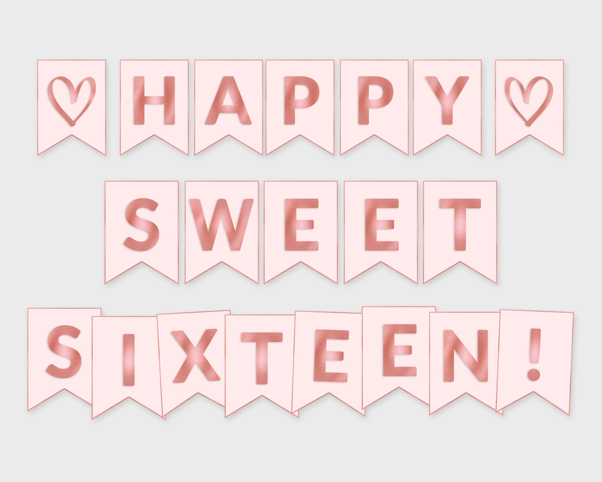 Happy Sweet Sixteen Printable Banner Pink Rose Foil Flags Printable PDF DIY Print Instant Download RFC Etsy