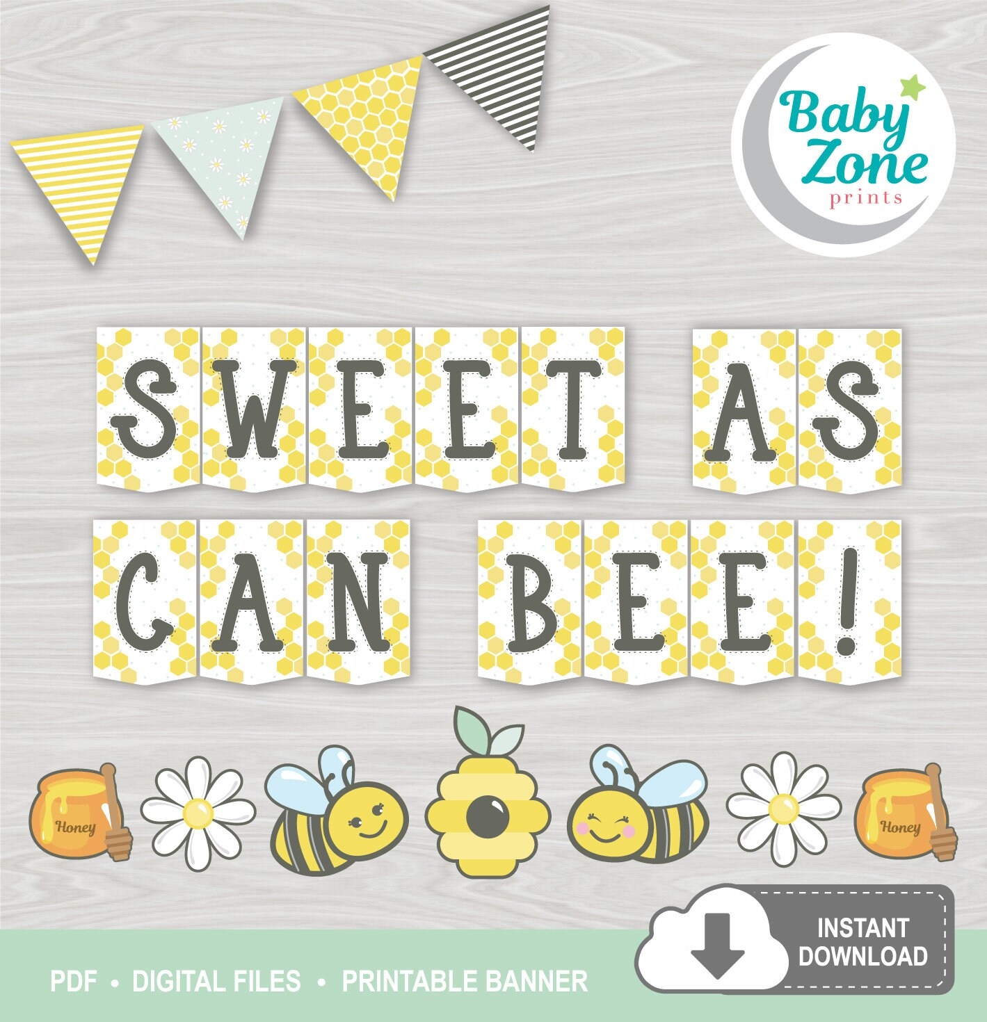 Sweet As Can Bee Printable Banner Bumble Bee Baby Shower Decoration Etsy